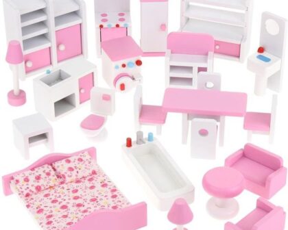 Drewniane Meble Mebelki do Domku dla Lalek 22 el.