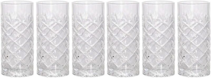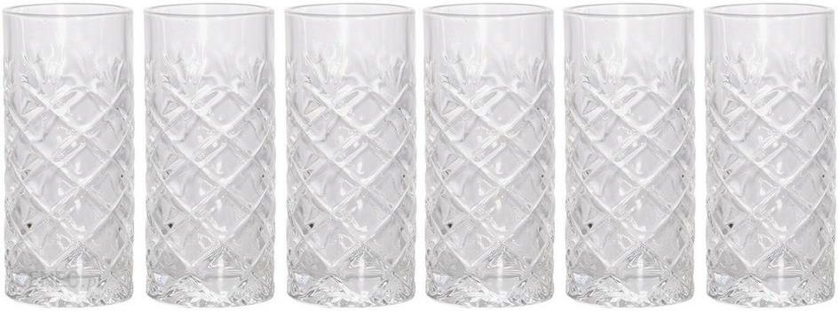 Szklanki idealnie nadają się do drinków, whisky, napojów. Nadają się do mycia w zmywarce. W zestawie 6 sztuk. Wymiary: śr. 6,5cm, wys. 14cm. Pojemność: 250ml.