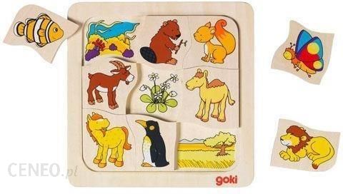 Drewniana układanka w zabawny sposób uczy dostrzegać zależności pomiędzy obrazkami.Aby ułożyć klocki na swoim miejscu należy dopasować obrazek wierzchni do tego ukrytego pod spodem.Znajdziecie tu dziewięć symptycznych zwierzątek, które szukają swoich domów.Pomóżcie im odnaleźć ten właściwy, bo każde mieszka gdzie indziej: na drzewie, w wodzie, na pustyni itp.Układanka ćwiczy koncentrację, umiejętność kojarzenia faktów i motorykę dłoni.Wymiary: 18 x 18 cmWiek: 2 lata +Referencja: 56725Deklaracja zgodności CE