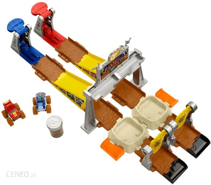 Do jazdy… gotowi… START! Dzięki zestawowi do zabawy Blaze i megamaszyny Wyścig w błocie od Fisher-Price® dzieci mogą ścigać się pojazdami Blaze i Crusher w niezwykły sposób. Ten rajdowy zestaw do zabawy ma różne konfiguracje, mnóstwo „błotnej” masy i dwie wyrzutnie, z których można wystrzelić pojazdy po rampie i posłać je w powietrze nad kraterami! Czy oba pojazdy przeskoczą nad „błotem”, czy może jeden z nich w nie wpadnie? Z tym pełnym akcji zestawem wyścigowym wszystko jest możliwe! W zestawie są pojazdy Blaze i Crusher, 1 pojemnik z masą do zabawy, 2 wyrzutnie i inne elementy.