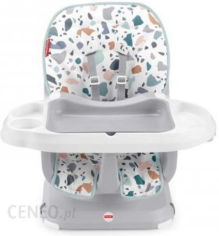 Z Krzesełkiem do karmienia – nakładką na krzesło SpaceSaver od Fisher-Price® możesz się cieszyć wszystkimi zaletami pełnowymiarowego krzesełka do karmienia oraz kompaktowym rozmiarem ułatwiającym przenoszenie i konstrukcją pasującą na większość krzeseł w domu i restauracji. Ma dwa ustawienia wysokości, cztery ustawienia dopasowania do brzuszka i trzy pozycje pochylenia, aby dziecku zawsze było wygodnie. A gdy mały smakosz podrośnie, możesz przekształcić fotelik w nakładkę na krzesło. Utrzymanie krzesełka w czystości jest bardzo łatwe! Głęboka konstrukcja zapobiega wypadaniu jedzenia z blacika, a odporne na zalanie pokrycie siedziska i pasy bezpieczeństwa można prać w pralce. Siedzisko, blacik i dodatkową wkładaną tacę można myć w zmywarce, więc czyszczenie zajmuje kilka chwil. Używaj w pozycji pionowej, gdy dziecko ma wystarczającą kontrolę nad górną częścią ciała, aby usiąść bez pomocy
