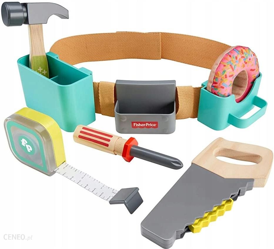 Twój mały budowniczy będzie się świetnie bawił „naprawiając” rzeczy w domu dzięki zestawowi Fisher-Price Pas z narzędziami. Pasek z materiału ma wygodne plastikowe uchwyty na wszystkie narzędzia: młotek, śrubokręt, piłę, która wydaje dźwięki podczas cięcia oraz działającą, zwijaną taśmę mierniczą z tkaniny. Jest tu nawet miękki pączek, który będzie nagrodą za dobrze wykonaną pracę. Niezależnie od tego, czy majsterkujesz w garażu, czy robisz remont domu, Twój mały asystent będzie przy Tobie z własnymi narzędziami.