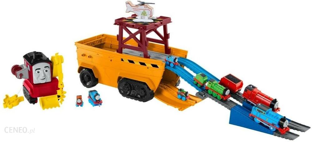 Zestaw obejmuje 3 lokomotywy: dwie z serii Minis i Tomka z linii Trackmaster. Użyj dołączonych elementów torów, aby ścigać się figurkami lokomotyw po rampie i dołącz do innych zestawów Thomas Friends (inne lokomotywy i zestawy sprzedawane osobno).Do kompletu dołączono lądowisko dla helikoptera ratunkowego Harolda. W zestawie znajdziemy łącznie ponad 35 elementów, w tym także tory (proste, krótkie, zakręty, podjazdy, rozjazdy i łączniki). Zabawkę możesz, połącz z innymi zestawami pociągów Thomas.