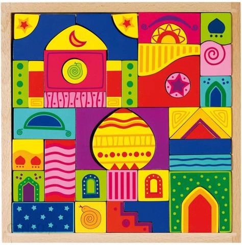 Puzzle drewniane dla dzieci 3D – Klocki 1001 NOCY , 42 elementyPuzzle 3D Kolorowe Klocki 1001 NOCY, 42 elementyFantastycznie kolorowe, drewniane klocki pozwolą dziecku na tworzenie niesamowitych, nowatorskich budowli, przypominających pałace z baśni „1001 nocy”. Na drewnianej podstawce znajdują się 42 kolorowe elementy o różnych kształtach. To, w jaki sposób dziecko je wykorzysta, zależy tylko od jego kreatywności i innowacyjności. Układanie klocków zapewni dziecku zabawę na długie, długie godziny. Zabawa znakomicie uczy spostrzegawczości oraz rozwija zmysł artystyczny malucha.Wymiary: 23,3 x 23,3 x 2,3 cmWiek: 3+