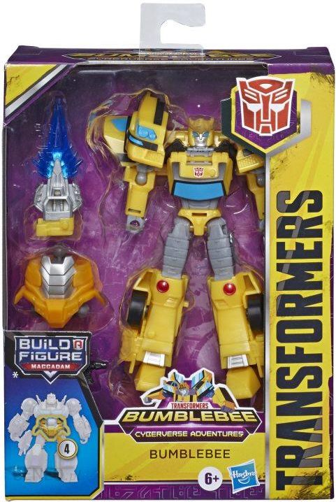 Walka bohaterskich Autobotów i złych Decepticonów trwa w serialu animowanym „Bumblebee Cyberverse Adventures”! Odkryj wyjątkowe moce i zdolności każdej postaci Cyberverse i zobacz, jak mogą zostać użyte, by chronić Cybertron… lub mu zagrozić. Łatwo przekształcaj i atakuj dzięki figurkom Bumblebee Cyberverse Adventures klasy Deluxe! (Sprzedawane oddzielnie. Zależnie od dostępności). Figurki przekształcają się w prosty sposób z robotów w tryb pojazdu i dołączono do nich akcesoria inspirowane serialem animowanym! Do każdej figurki klasy Deluxe dołączono jedną część do samodzielnego montażu Build-a-Figure. Połącz wszystkie części, by zbudować figurkę Maccadama! (Figurka Maccadama nie przekształca się). Dzieci mogą zbierać inne figurki klasy Deluxe (sprzedawane oddzielnie, zależnie od dostępności), by odkrywać charakterystyczne ruchy ataku swoich ulubionych postaci z serialu Bumblebee Cyberverse Adventures – to jeden z najlepszych sposobów, by przedstawić małym dzieciom i nowym fanom fascynujący świat Transformers! Transformers i wszystkie powiązane postacie są znakami towarowymi firmy Hasbro. Hasbro i wszystkie powiązane terminy są znakami towarowymi firmy Hasbro.Zestaw zawiera: figurkę, elementy wyposażenia dodatkowego, część do samodzielnego montażu Build-a-Figure oraz instrukcję.Wiek: od 6 lat  Ostrzeżenie: Niebezpieczeństwo zadławienia – mogą powstawać drobne elementy. Produkt nie jest przeznaczony dla dzieci poniżej 3 roku życia.