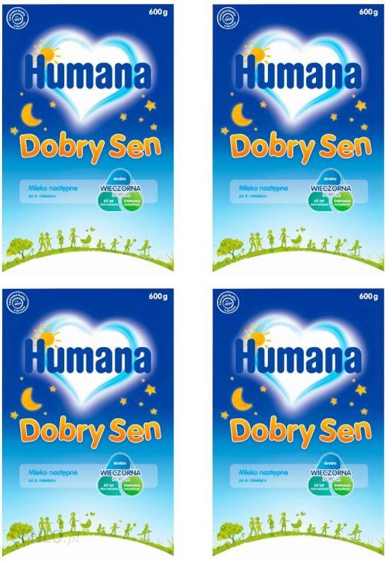 Dobry Sen Mleko następne po 6. miesiącu Zestaw 4 x 600 gSłodkich snów dla Twojego maleństwaMleko Humana Dobry Sen zostało stworzone jako wieczorny posiłek Twojego dziecka, do podania tuż przed pójściem spać. Specjalna kompozycja zawiera skrobię, która zapewnia jej kremową konsystencję. Podobnie jak mleko następne Humana 2, mleko Humana Dobry Sen jest wzbogacone o wszystkie niezbędne składniki odżywcze. DHA (kwas dokozaheksaenowy) – istotne dla prawidłowego rozwoju wzroku u niemowląt do 12. miesiąca życia (korzystny efekt uzyskuje się przy spożyciu 100 mg DHA dziennie) ALA (kwas alfa-linolenowy) – niezbędne kwasy tłuszczowe omega-3, dla wsparcia funkcji poznawczych Witamina C – ważna dla funkcjonowania układu odpornościowegoNaszą obietnicą wobec Ciebie i Twojego maleństwa jest dostarczenie mu wszystkich niezbędnych składników odżywczych w oparciu o ponad 65 lat doświadczenia w dziedzinie nauki i badań. wieczorna porcja 65 lat doświadczenia niezbędne składniki odżywcze skrobia kremowa konsystencja