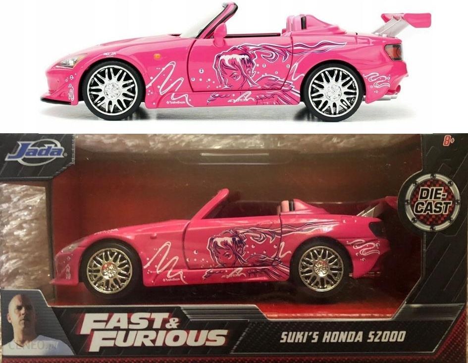 model samochodu Honda S2000 Convertible z filmu „Szybcy i Wściekli 2” – „Za szybcy za wściekli”wersja angielska: „Fast & Furious 2″(model firmy Jada Toys No. 253203028)kierowca (kierowczyni:) : Suki (Devon Aoki)Skala: 1/24Kolor: różowyMateriał: metal/plastik/gumaOficjalny licencjonowany model filmu „Fast &Furious”®.kolekcja Szybcy i Wścieklidługość samochodu ok. 18 cm,Model samochodu i odznaka charakteryzują się dbałością o szczegóły. Samochód posiada ruchome elementy – drzwi, koła, maska, bagażnikmodel metalowy z elementami plastikowymiIdealny dla miłośnika filmu, filmowych pościgów samochodowych, marki, samochodów , fana motoryzacji, kolekcjonera lub po prostu jako zabawka dla dziecka.Wierni miłośnicy całej serii, z pewnością będą zachwyceniZestaw licencjonowany i oryginalny.Wiek: 8+;podstawka: miniaturowa – niewidoczna spod samochoduProdukt w ładnym opakowaniu – idealny na prezentOficjalny, licencjonowany produkt serii „Fast&Furious”