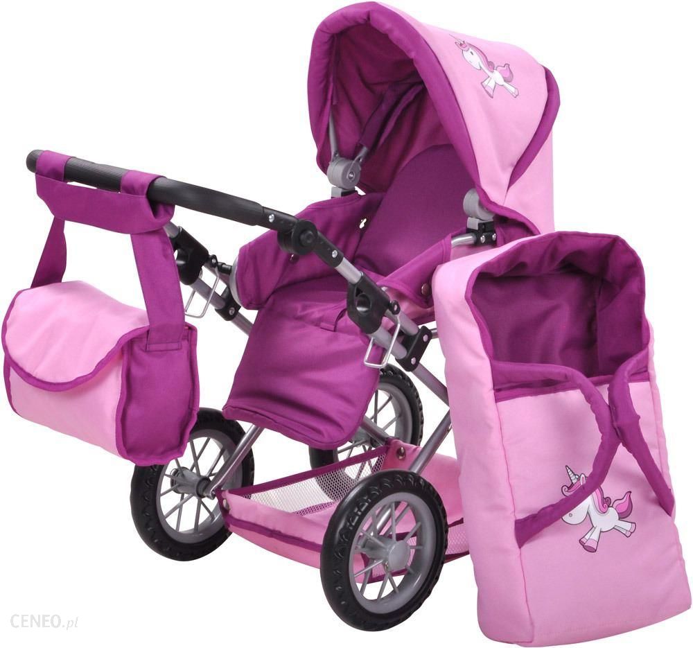 Wózek dla lalek Ruby w różowym kolorze z fioletowymi wstawkami od marki Knorr Toys to idealna zabawka dla dziewczynek od 3 roku życia. Wyśmienicie uzupełnia wyposażenie ulubionej lalki. Wykonany bardzo starannie w najmniejszym szczególe i w ponadczasowym designie sprawia, że wygląda jak wymarzony wózek księżniczki. Model 3w1 daje wiele możliwości zabawy. Możesz korzystać z wózka jako gondoli, spacerówki czy samego nosidełka. Od dziś Twoja pociecha będzie mogła zabrać ze sobą lalę wszędzie: na rodzinny obiad, wakacje czy długi spacer w parku.Gondola przeznaczona jest dla lalki o wysokości do 46 cm. Dziewczynka w czasie zabawy może przewozić na leżąco nawet kilka lalek na raz. W końcu jaki może być wygodniejszy sposób układania bobasa do snu niż przy wykorzystaniu wózka. Zamiast położyć lalę bezpośrednio w wózku, można skorzystać z dołączonego do zestawu nosidełka. Gdy młoda mama będzie chciała przenieść bobasa w inne miejsce, przy takim rozwiązaniu może udać się jej bez budzenia pociechy.Jeśli zabieracie lalę na spacer do parku lepszym rozwiązaniem będzie użycie wózka jako spacerówki. Podniesienie bobasa sprawi, że poczuje się jak prawdziwe dziecko i będzie widział wszystko wokół. W odpowiednim zabezpieczeniu lali pomoże przypinany pasek wszyty do wózka, co zwiększa bezpieczeństwo i pozwala uniknąć wypadnięcia lali. Troskliwa mama może więc przewozić także bobasy, które siedzą mało stabilnie i potrzebują oparcia. Przybory niezbędne poza domem mała mama może włożyć do torby przyczepionej do rączki wózka. Torba posiada przyszyty pasek, dzięki czemu dziewczynka może nałożyć ją także na ramię.Wózek Ruby cechuje się solidną konstrukcją, co zapewnia stabilność pojazdu. Pomimo wytrzymałej ramy, wózek jest lekki, co ułatwi prowadzenie i nie będzie sprawiać trudności w czasie zabawy. Wózeczek z pewnością posłuży na dłużej za sprawą dużych, piankowych kół oraz pozostałych wykorzystanych materiałów dobrej jakości.Wysokość rączki do prowadzenia wózka jest regulowana w zakresie od 34 cm do 62 cm, dzięki czemu mogą się nią bawić większe i mniejsze dzieci. W pojeździe zastosowano miękką, piankową rączkę z prążkowaną fakturą, która umożliwia pewne trzymanie kierownicy bez zamartwiania się rodzica o ześlizgnięcie rączek dziecka. Dodatkowo pojazd został wyposażony w rozsuwany daszek, aby młoda mama mogła schować swoją pociechę przed intensywnym słońcem w upalny dzień czy wiatrem w chłodniejszy Można go łatwo i szybko złożyć, by zabrać go ze sobą do samochodu, na wakacje do babci, a nawet przechować w pokoju po skończonej zabawie.Wózek sprawdzi się doskonale na prezent dla dziewczynki, która uwielbia zabawę w dom z ulubionymi lalkami. Dziecko odgrywając scenki pobudza wyobraźnię i może trenować kreatywność. Wygodny, a zarazem lekki wózeczek może zachęcić do zwiększonego ruchu i aktywności na zewnątrz.