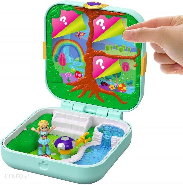 Zestawy Polly Pocket Ukryte ŚwiatyPolly Pocket Ukryte Światy to tematyczne małe puzderka z kokardą na górze, które skrywają sekretne niespodzianki. Każda szkatułka zawiera 3 ukryte miejsca, 3 losowe akcesoria-niespodzianki (dwa do założenia lalce), 1 miniaturową lalkę oraz 1 arkusz z naklejkami. Do wyboru różne tematyczne zestawy: Zatoka Syrenki, Kraina Jednorożca, Czarodziejski Las i nie tylko.Sprzedawane oddzielnie w zależności od dostępności.