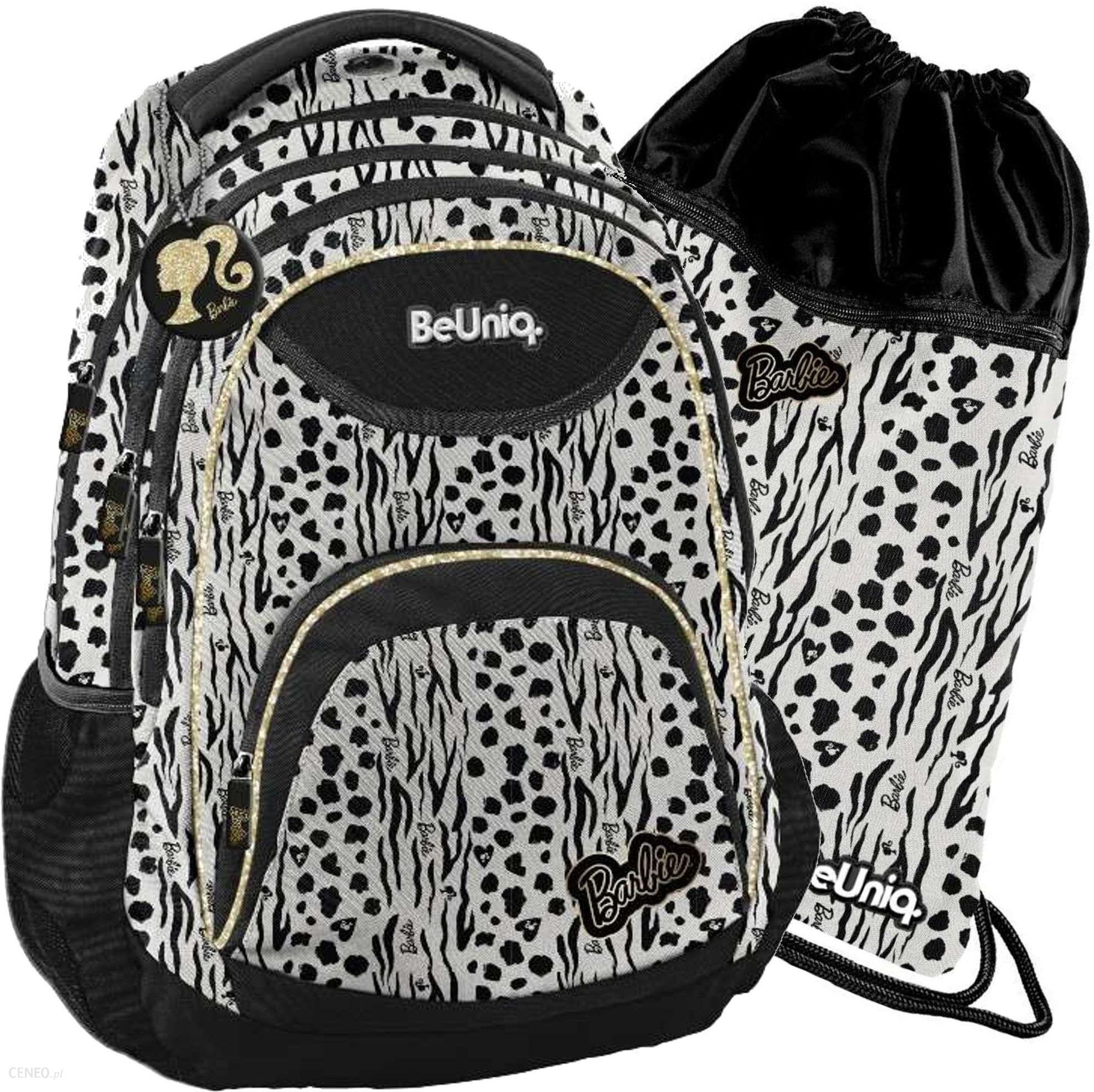 Zestaw 2w1 składa się z plecaka i worka gimnastycznego. Wszystkie elementy zestawu posiadają wzory z lalką Barbie.