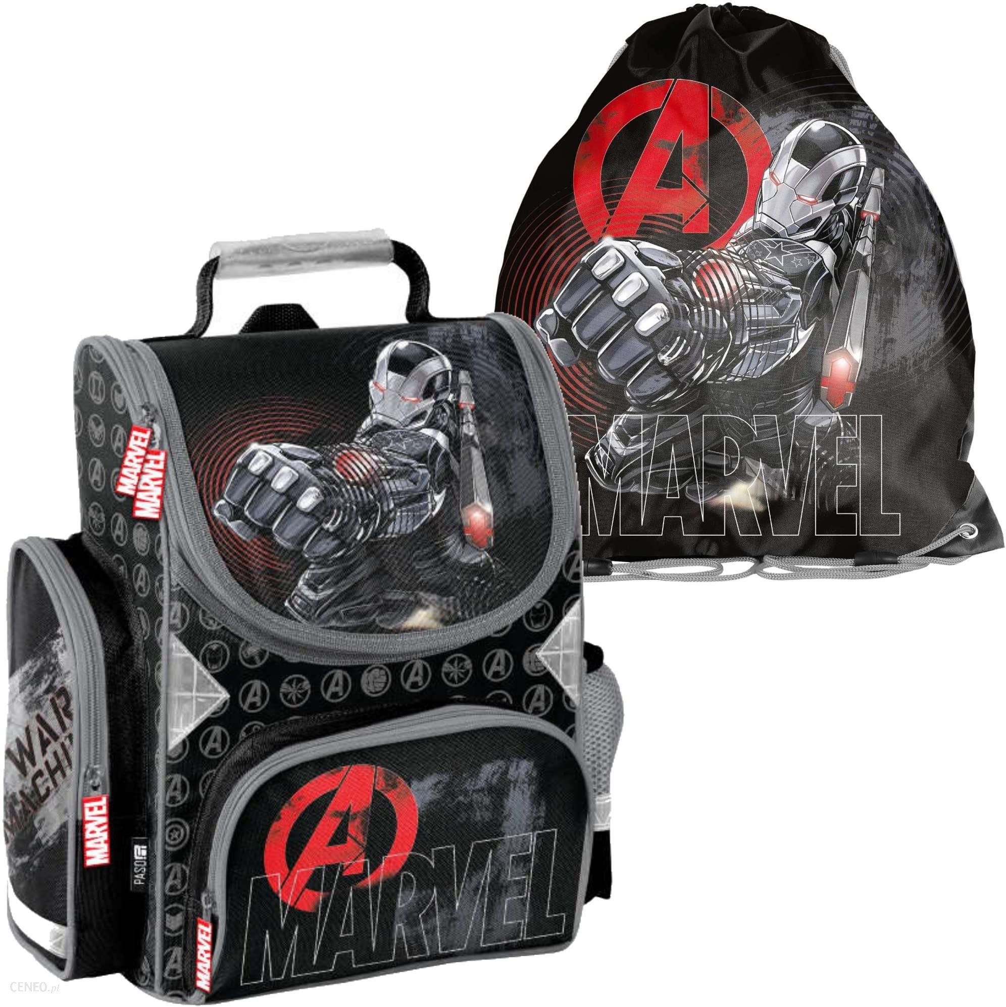 Jest on w kolorystyce czarno-szarej, posiada obrazki związane z Marvelem.Posiada dużą komorę, dwie mniejsze oraz elastyczną siateczkę na butelkę.