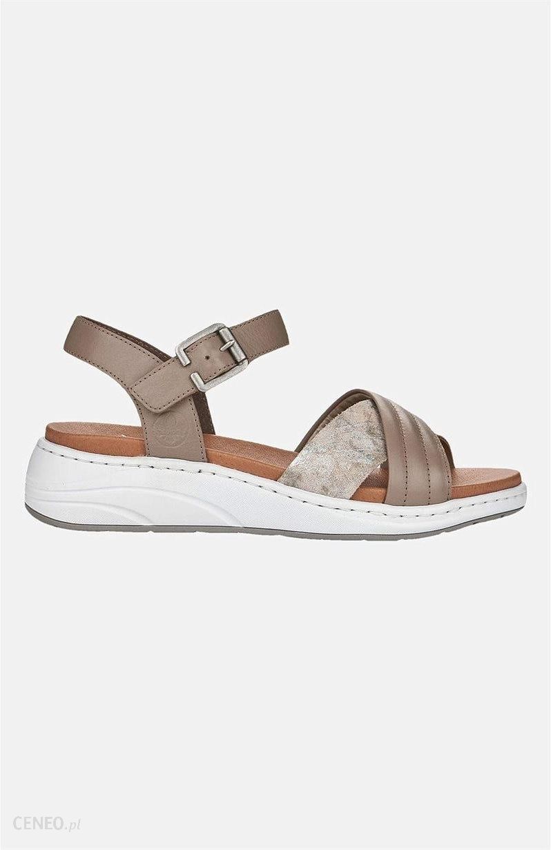 Sandały marki Rieker zpięknego zamszu. Fason standardowy. Technologie Antistress (opis poniżej). Lekkie sandały z zapięciem na rzep i gumką przy pasku zapinanym na rzep dla lepszego dopasowania. Wysokość koturna ok. 4,5 cm z tyłu. Cholewka ze skóry naturalnej/tworzywa. Futrówka/wkładka ze skóry/tworzywa sztucznego. Podeszwa syntetyczna. Specjalnością marki Rieker są technologie amortyzujące uderzenia oraz lekkie, sprężyste elementy, które powodują, że sandały są wygodne i modne: – Minimalna waga – sandały są lekkie. – Maksymalna sprężystość. – Szerokość sandałów gwarantuje, że znajdzie się w nich miejsce na spuchnięte stopy po całym dniu. – Optymalna amortyzacja uderzeń na różnych powierzchniach.