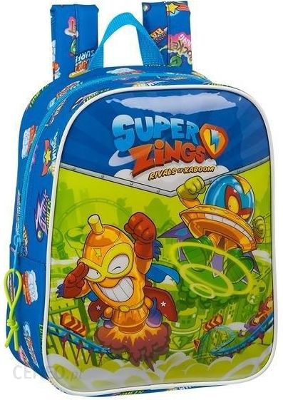 SUPER ZINGS SERIA 5 PLECAK SZKOLNY DLA DZIECI 27CMUzupełnij swoją kolekcję SuperZings plecakiem szkolnym.Plecak z motywem ulubionych super bohaterów i super złoczyńców ze świata Super Zings Rivals of Kaboom doda twojemu dziecku odwagi podczas pierwszych dni w szkole, zerówce czy przedszkolu. W jego wnętrzu uczeń umieści wszystkie niezbędne przedmioty takie jak książki, zeszyty, piórnik z przyborami piśmienniczymi, a także drugie śniadanie i napój.Każdy młody fan Super Zings ucieszy się zarówno z figurek jaki i akcesoriów przedstawiających jego ulubionych bohaterów. Twoja dziecko z dumą będzie nosiło plecak, który wyróżni go w tłumie wśród kolegów i koleżanek.Twoja pociecha w nadchodzącym roku szkolnym poszerzy grono uczniów? Spraw, aby ten dzień był wyjątkowy i na długo pozostał w pamięci twojego malucha. Podaruj mu wyjątkowy prezent – plecak z motywem nieustraszonych bohaterów Super Zings Rivals of Kaboom, który doda mu odwagi i sprawi, że z podniesioną głową i pewnością siebie pokona pierwsze kroki w przedszkolu, zerówce czy szkole podstawowej.Plecak został wykonany z wysokiej jakości materiałów. Produkt posiada jedną komorę wewnętrzną zapinaną na łatwy w użytkowaniu zamek błyskawiczny. Plecak wyposażono w uchwyt umożliwiający zawieszenie przy szkolnej ławce lub przenoszenie w dłoni. Miękkie i regulowane pasy naramienne można szybko i sprawnie dopasować do indywidualnych potrzeb maluchaWymiary Plecaka( Mierzone W Najszerszym Miejscu):Szerokość: 22 cmWysokość: 27 cmGłębokość: 10 cm