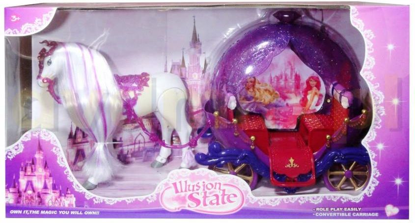 Piękny powóz z konikiem zabierze Twoją lalkę w nieznane.Piękny koń jest zaprzężony do powozu i zabiera lalkę w wymarzone miejsce. Konia można odczepić od powozu. Karetę można otworzyć od góry co ułatwi włożenie lalki do środka karety. Produkt działa na baterie typu AA. Baterie nie znajdują się w zabawce.Zabawka zapakowana w kartonowe opakowanie z przezroczystym okienkiem. Produkt dla dzieci od 3 lat. Podane wymiary stanowią wymiar opakowania.