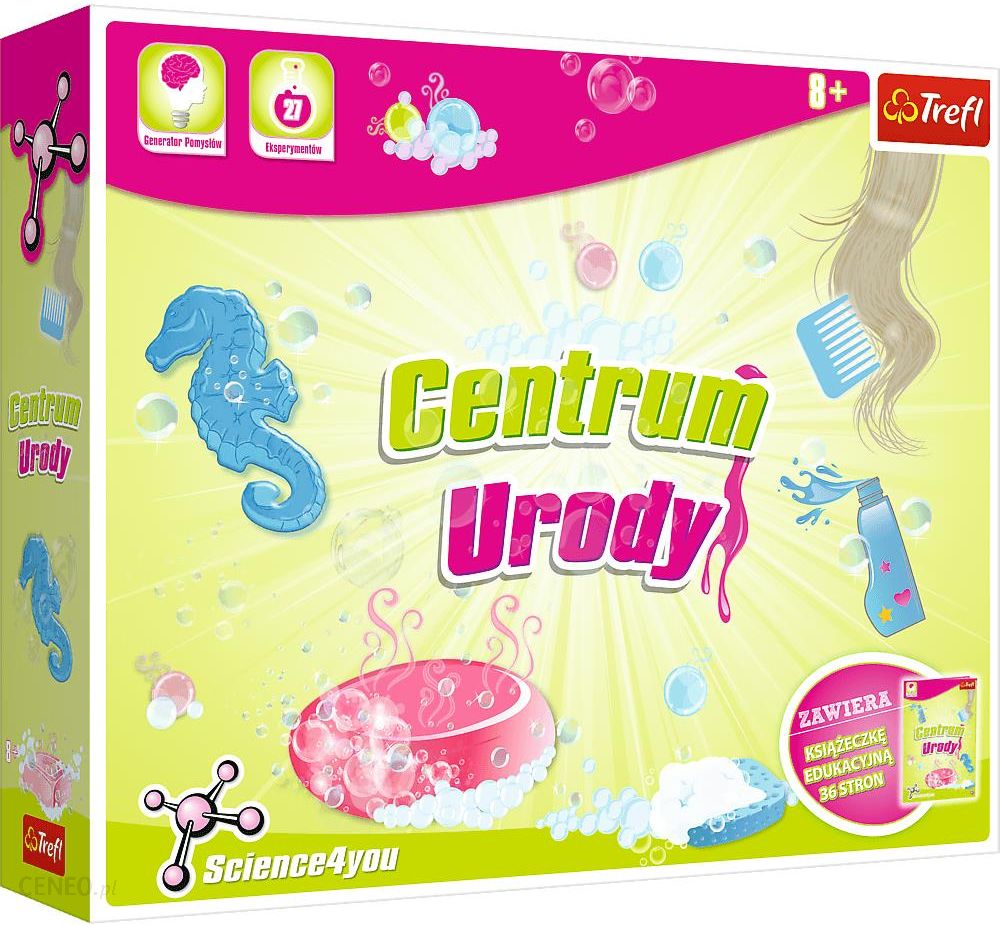 Trefl Science4You Centrum Urody Zestaw XlW zestawie znajduje się wszystko, czego będą potrzebowały dziewczynki do zrobienia kosmetyków do ciała. Zestaw ten to idealny pomysł na prezent dla młodych panienek, które interesują się urodą i dbaniem o ciało i włosy. Przy pomocy studia urody wykonać można 27 doświadczeńZa pomocą tego zestawu dowiesz się:jak zrobić fantastyczne perfumy,jak zrobić pachnące, kolorowe mydełka,jak zrobić swój własny szampon oraz maseczkę do włosów,jak zrobić pachnącą sól do kąpieli oraz olejki do masażu