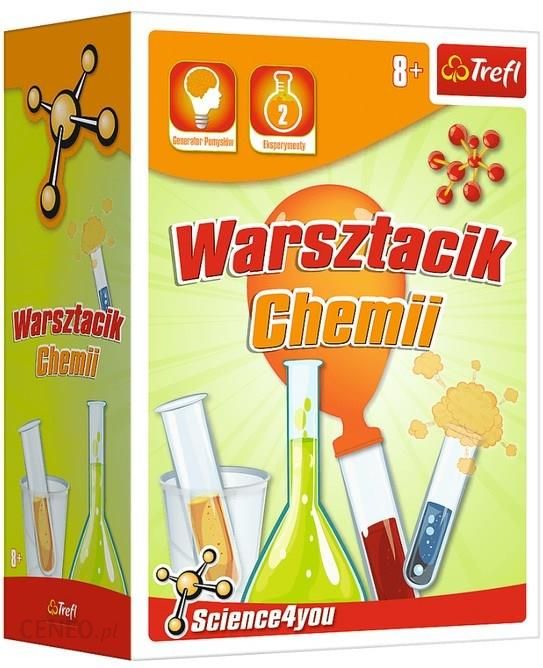 Trefl Science4You Warsztacik Chemii 60717Zaczynając od warsztaciku, poprzez pracownię, stwórz własną fabrykę nauki i zabawy! Z chemią na wesoło. Dowiedz się, jak napompować balon bez wdmuchiwania powietrza. Nie wiesz jak zrobić kolumnę pianową? Wyprodukuj dwutlenek węgla i odkryj wszystkie tajemnice chemii!